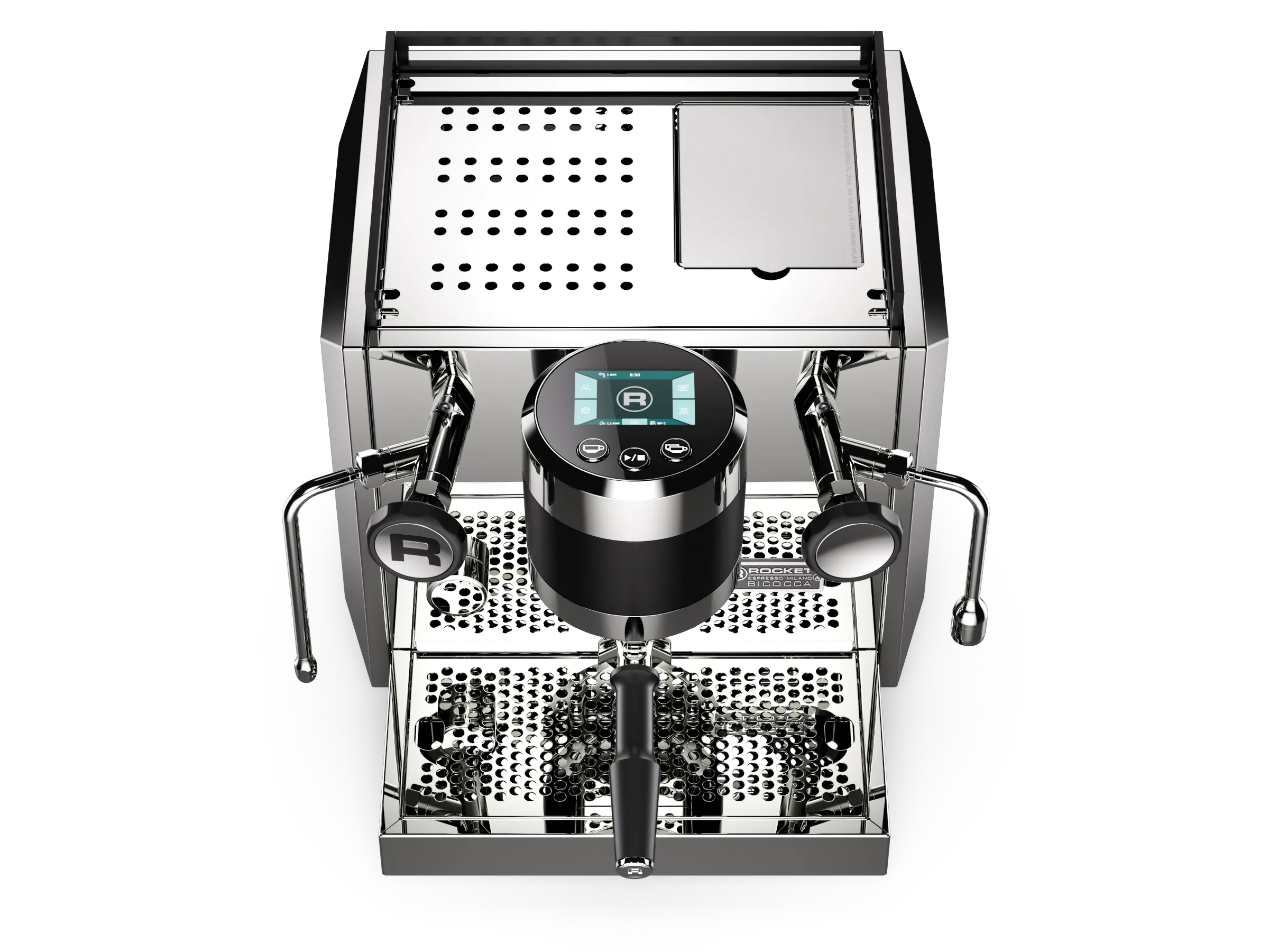 Rocket's relentless pursuit of improvement is reflected in the rigorous analysis of new technologies, the questioning of historical traditions, and the adoption of innovative experimental methods. The result: Bicocca, an espresso machine and experience designed for the most discerning coffee lovers. The Bicocca's bold architecture offers a visual glimpse into its internal engineering, engineered to exceed the needs of the most demanding amateur baristas. Its design pays homage to its technical performance with an intuitive touch interface located on the top of the group head. This allows for even more precise control of coffee extraction, the cornerstone of professional performance.