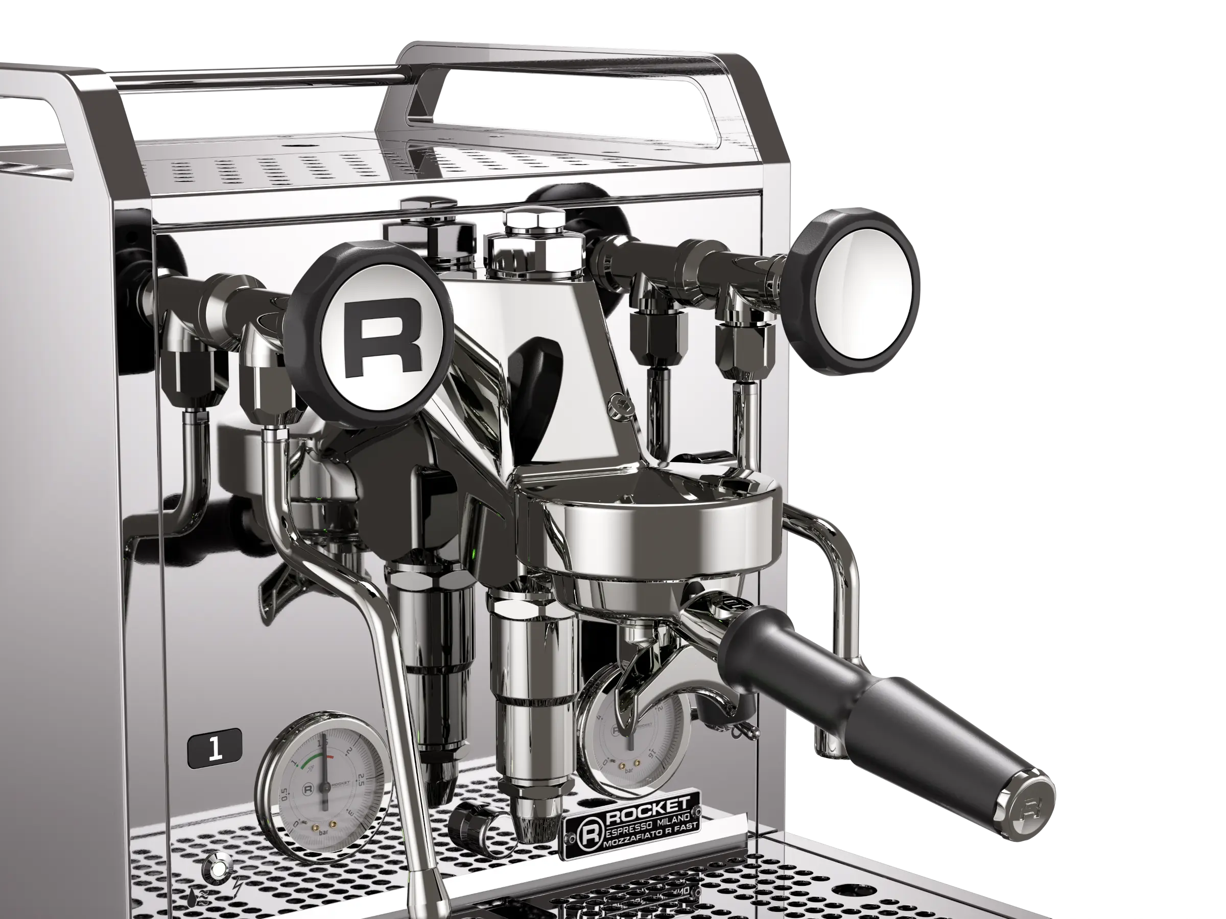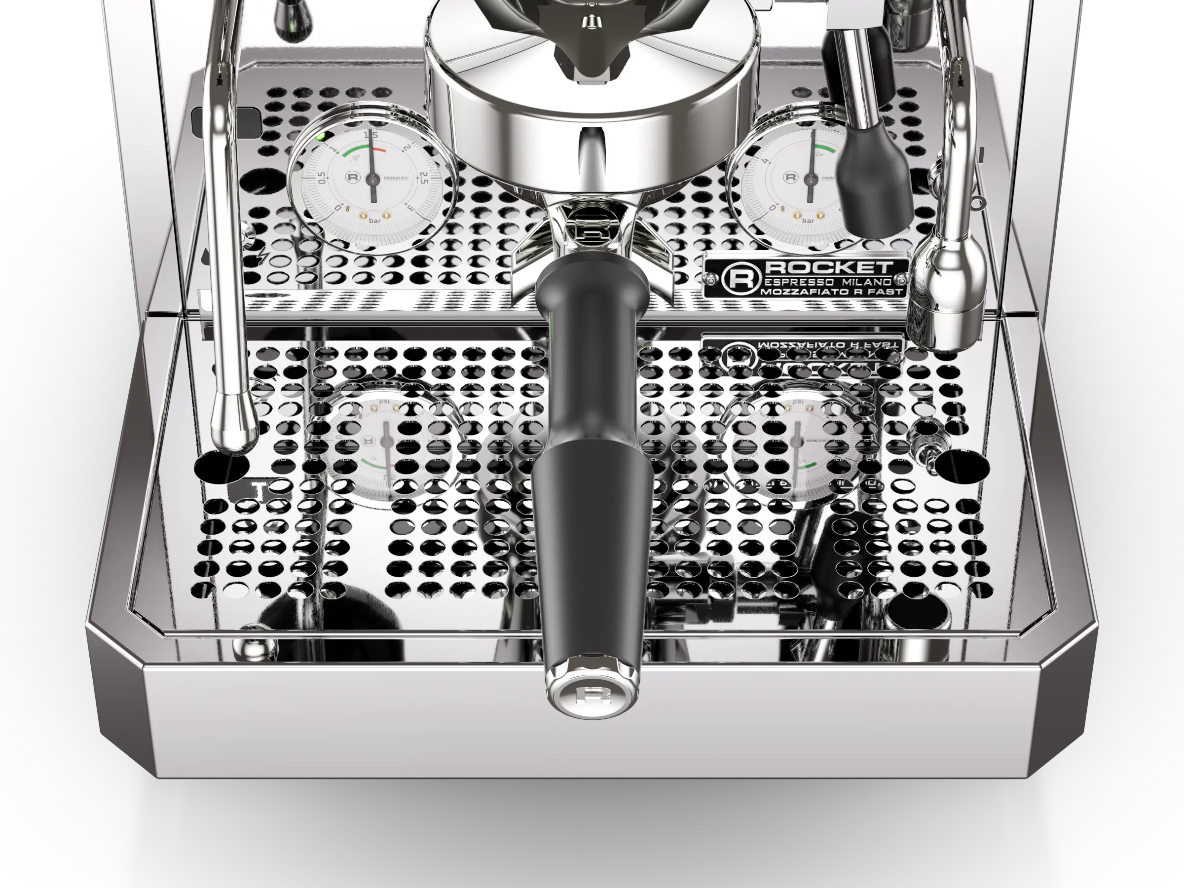 The new Mozzafiato (meaning "Breathtaking"), the MOZZAFIATO FAST R, marks the stylistic and functional evolution of a machine that reflects Rocket's passion for design, coffee, and cycling. Thanks to its new features, this machine is ideal for creating a unique coffee experience at home. Designed for rapid heating, it's ready to brew in record time.