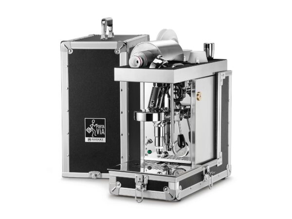 The Rocket portable espresso machine, the PORTA VIA. Traveling just got a whole lot more interesting: your 3-star hotel becomes a 5-star. With the Porta Via, the world's first truly portable espresso machine, there's no need to leave your room.