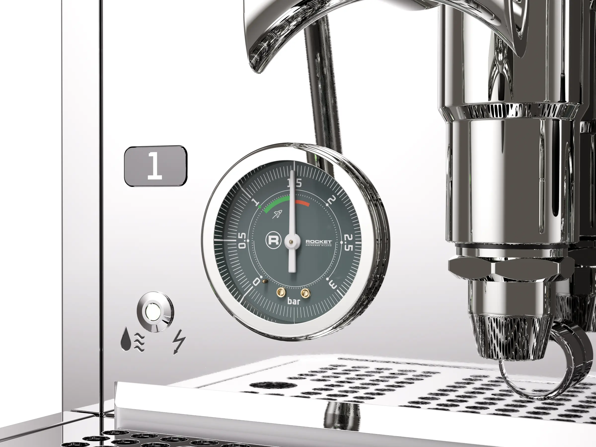La forme minimaliste des robinets d'eau et de vapeur repensés crée une esthétique cohérente qui s'étend à toute la gamme de produits Rocket.
