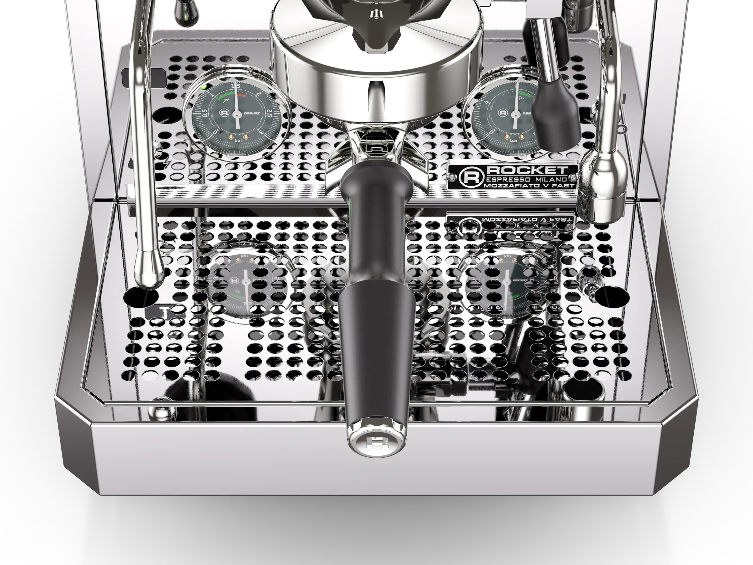 La nouvelle Mozzafiato, la MOZZAFIATO FAST V (qui signifie « À couper le souffle ») marque l'évolution stylistique et fonctionnelle d'une machine qui reflète la passion de Rocket pour le design, le café et le cyclisme. Grâce à ses nouvelles fonctionnalités, cette machine est idéale pour créer une expérience café unique à la maison. Conçue pour chauffer rapidement, elle est prête à infuser en un temps record.